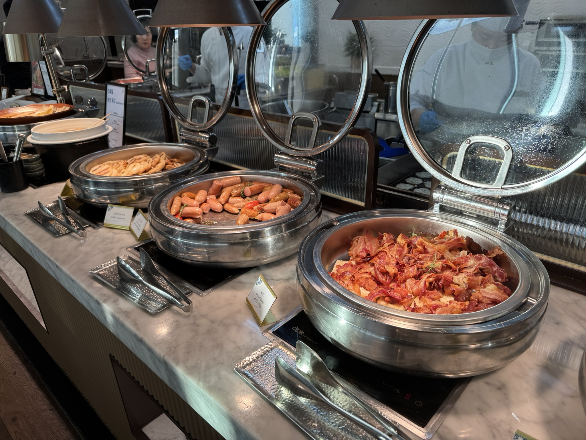 저는 조식 뷔페를 가게 되면, 항상 아메리칸 브랙퍼스트 느낌으로, 감자와 계란, 베이컨과 소시지를 먹습니다. :)