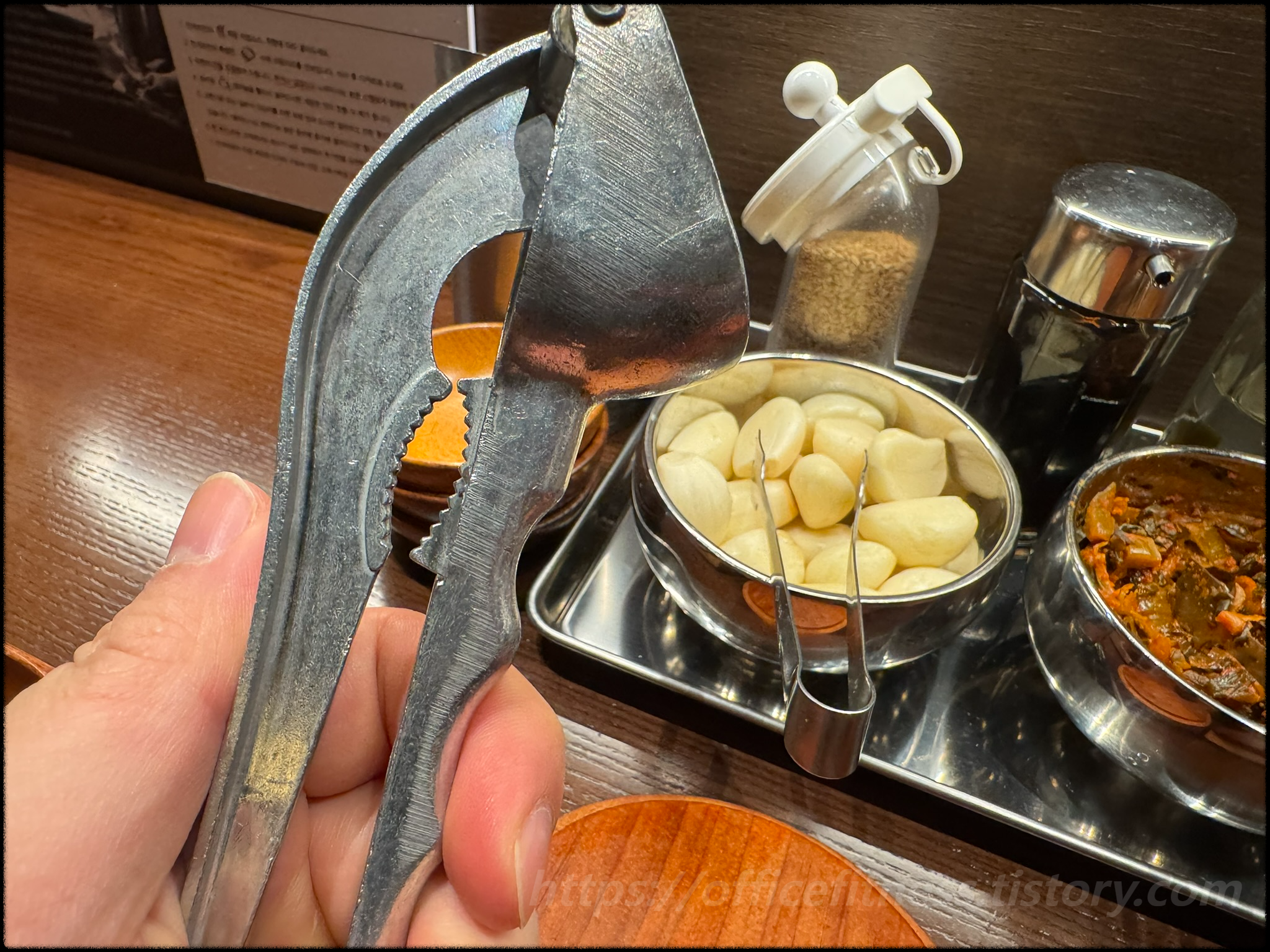 요렇게 생긴 마늘 분쇄기가 자리마다 비치되어 있구요.