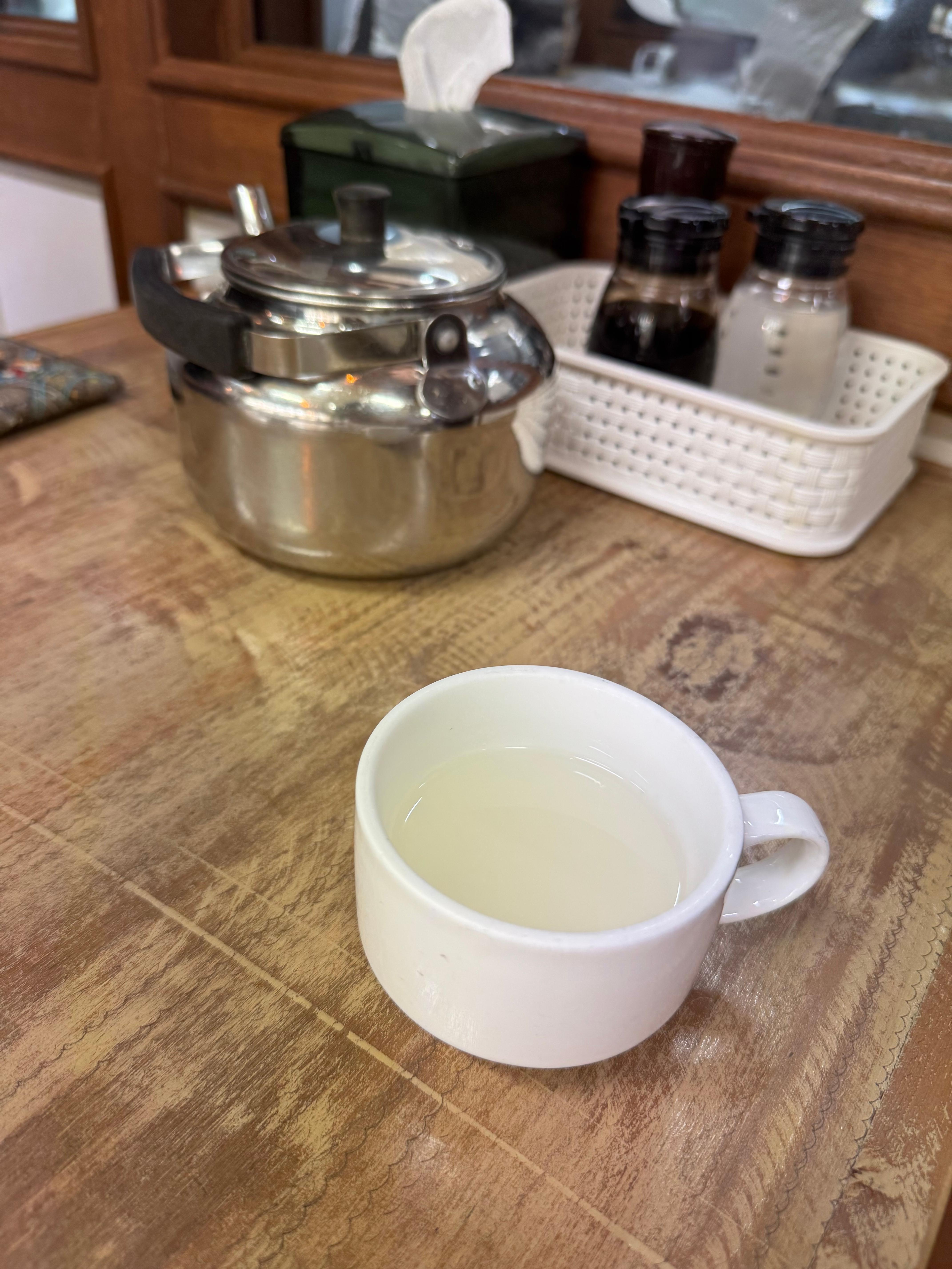 자리를 안내받으면, 따뜻한 온육수와 컵을 내어주십니다.