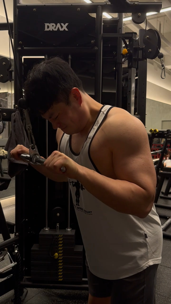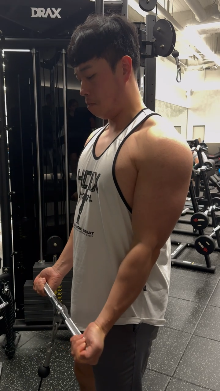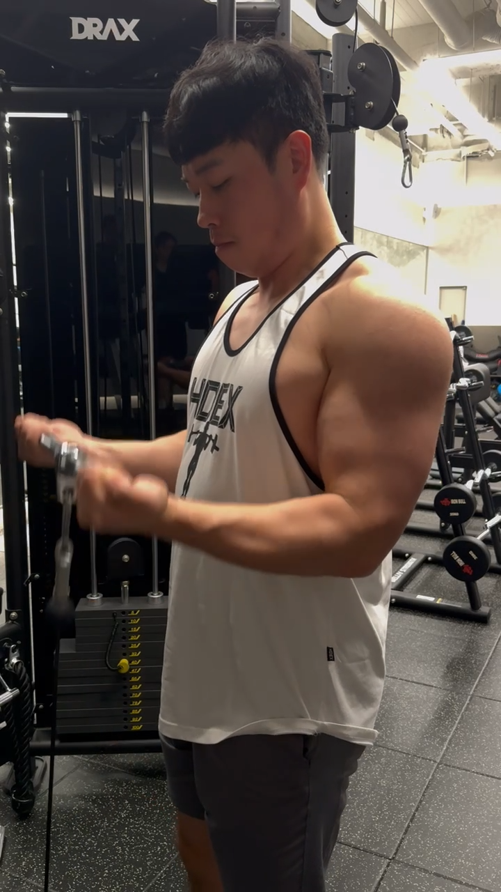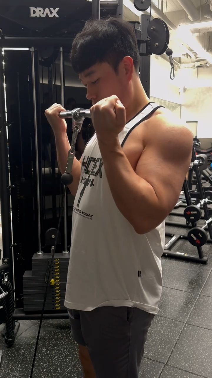특히 이두, 삼두 종목을 번갈아 사용해 주기 때문에, 피로감이 덜 하면서, 최대의 퍼포먼스를 낼 수 있습니다.