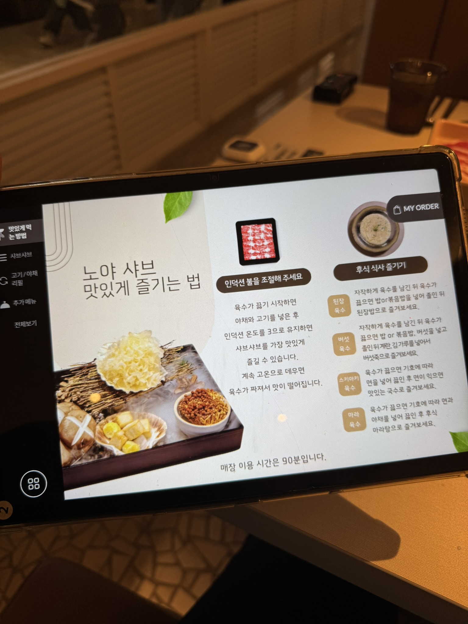 사실 패드로 주문할 건 고기뿐이었고, 나머지는 대부분 셀프 바를 이용했습니다. :)