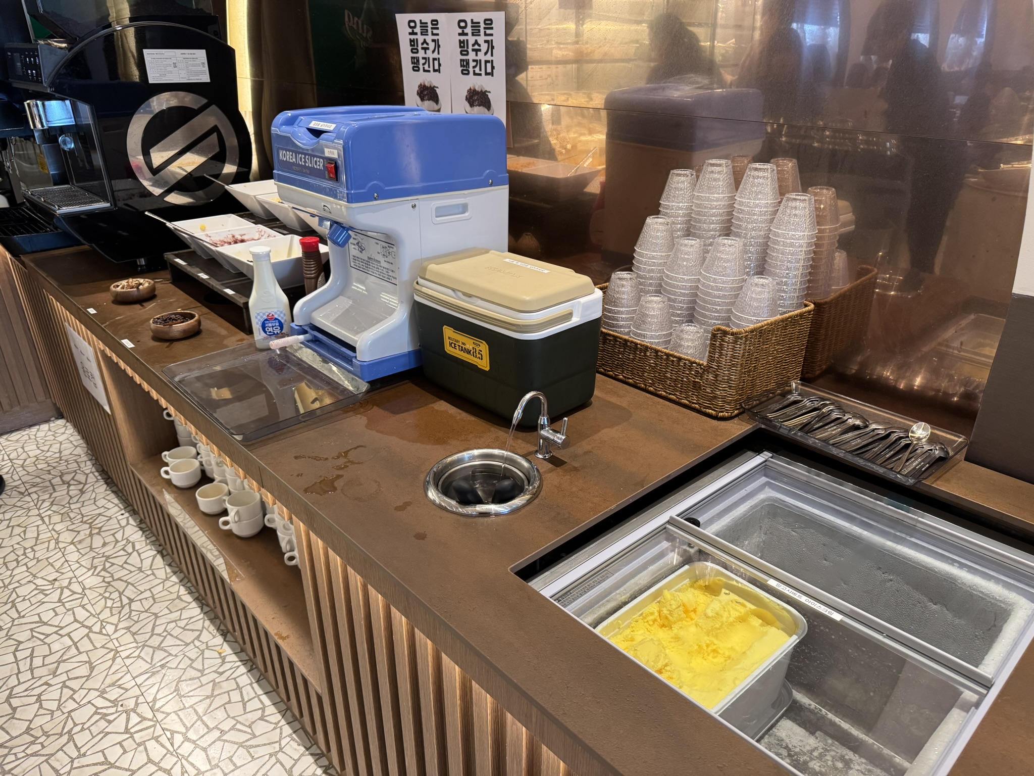 식후에 즐길 수 있는 셀프 빙수 바와 아이스크림 바도 존재합니다.